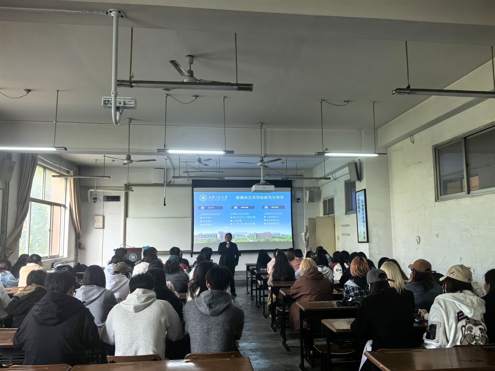 在互动交流环节,与会教师围绕“不同研究方向的就业适配领域”“跨专业报考的准备建议”“复试专业能力考核侧重点”等学生高频提问,结合学科特色与历年招生经验逐一解答;同学们则结合自身困惑积极提问,现场沟通氛围热烈高效。经过深入交流,2022级本科生对成人影视片专硕招生政策、培养模式及报考路径有了更全面的认知,进一步明确了备考方向与努力重点。